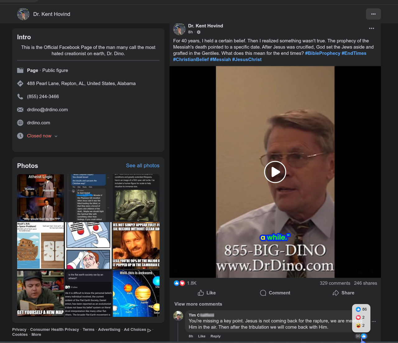 Update: So recent post of his is an issue for me and see here I am the very least of his "fans" so who the f am I to say anything? Almost a hundred comments so mine would be awash in attrition or ignore me. Anyone else (any other of his kind) I wouldn't pay any attention if the topic of "end times" were breached but my interest is simply that I was introduced to his work c.1998 and in a way where I was confronted my another Christian for my defending "intelligent design" (which is compromise but a non sequitur posit where it's still dependent on anthropomorphism fallacy) and in the bootleg vhs tape copy of his seminar (I think the same one I have linked below but it's too long & boring for me now) ... but he brought up the lunar landing and by my family tradition of military service, I was told to always respect a person's perspective if they conceded to the reality of the events since there are (were) those who denied that it actually happened. The way I was taught was that there was association with racism with anyone who'd deny it as well, to where the discussion, debate will be steered in that direction. That holds true with any kind of "disagreement" that's based on simplistic, to point of asinine, reasoning.